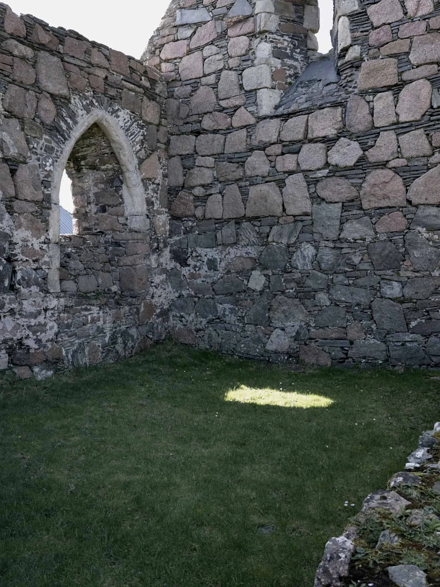Iona Nunnery. A rare example of a medieval nunnery in Scotland, established around 1200. Its ivy-clad ruins of pink granite walls offer a quiet, evocative glimpse of monastic life.