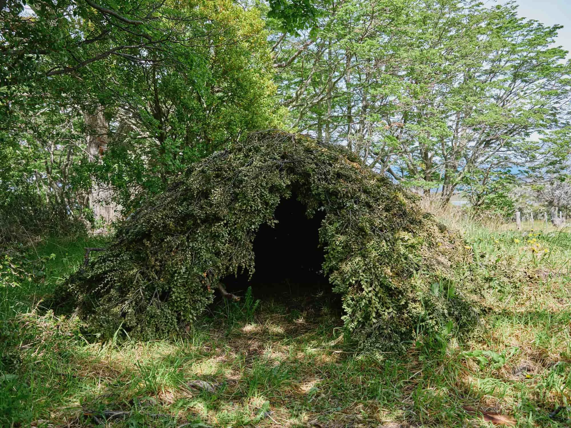 A reconstruction of a Yaghan dwelling at Estancia Harberton.