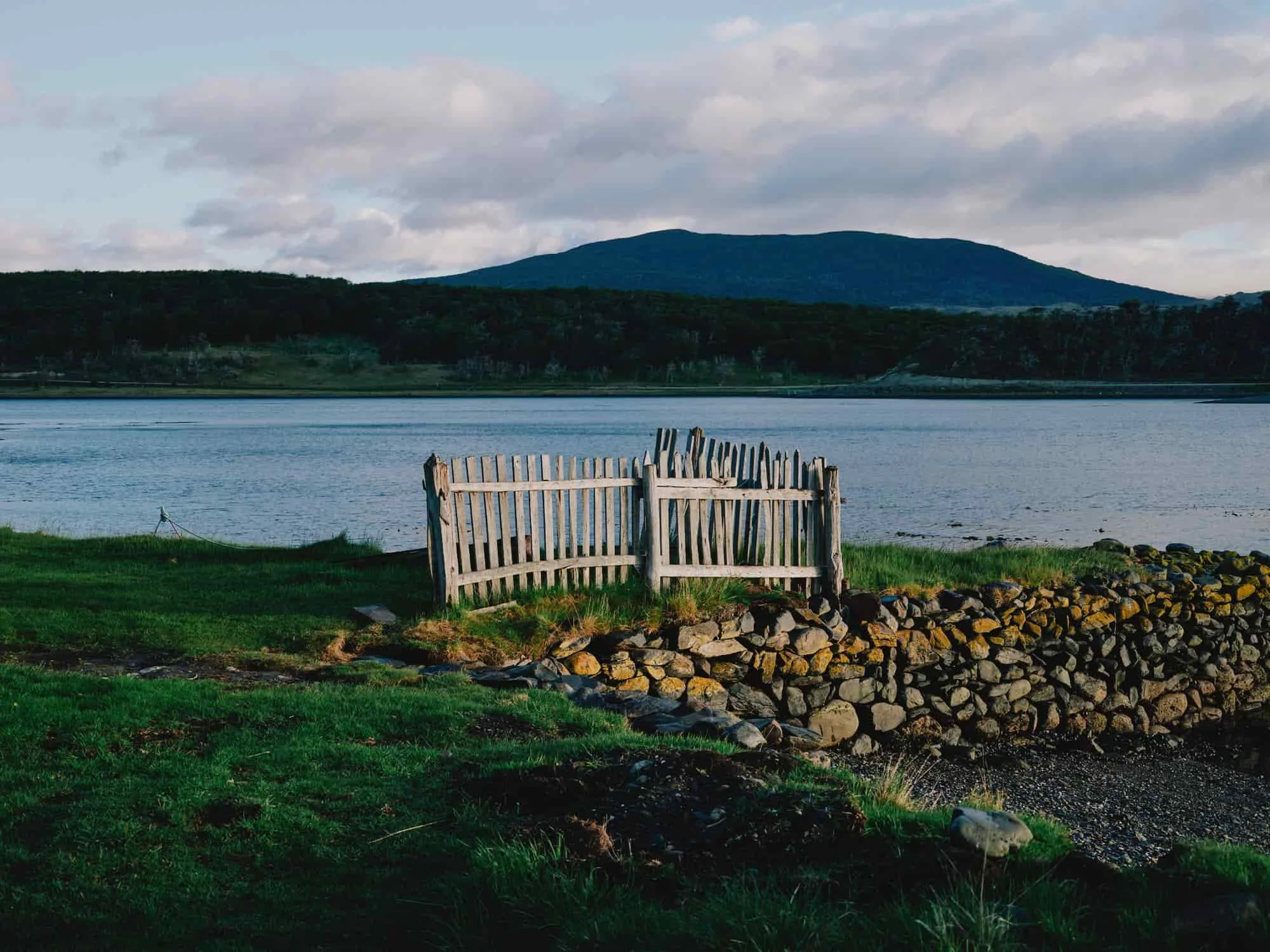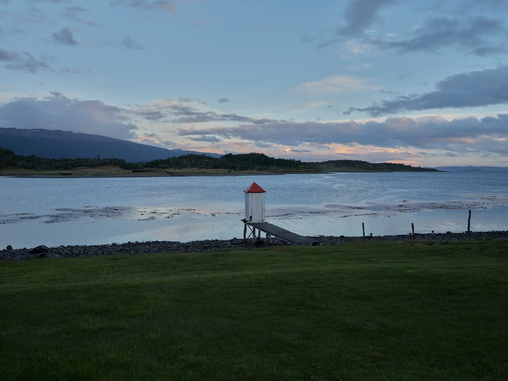 Today, Harberton looks much as it did in old photographs: a beach-head in the wilderness with whitewashed, weathered wooden buildings set on a sheltered bay, flanked by snow-streaked Andean peaks. Each house still looks out onto an old lavatory building, perched precariously at the end of a small pier in the bay.